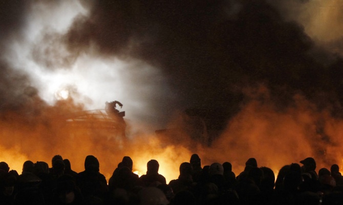 Напомним, около 22:00 на Грушевского снова произошла стычка между активистами Евромайдана и милицией. Там горят шины на баррикадах.