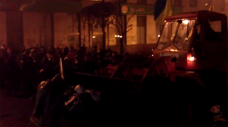Баррикады частично демонтируют посередине, разгребая ковшами бульдозеров проезд шириной в 4 метра.