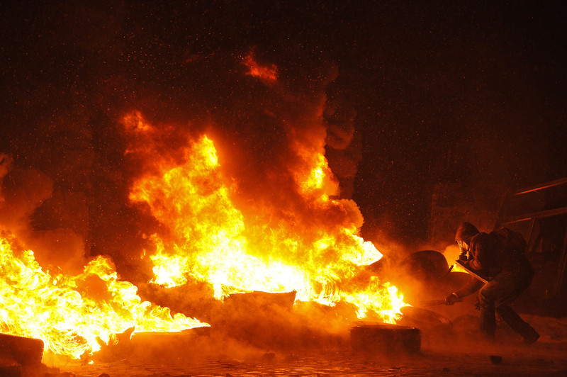 Палатки активистов Майдана, которые горят, являются естественным щитом для митингующих, они периодически подбрасывают покрышки в огонь.