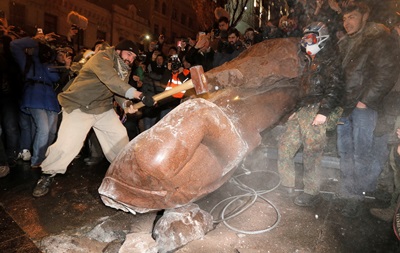 Уничтожения памятников продолжается после того как 8 декабря представители Свободы разрушили памятник Ленину в Киеве.