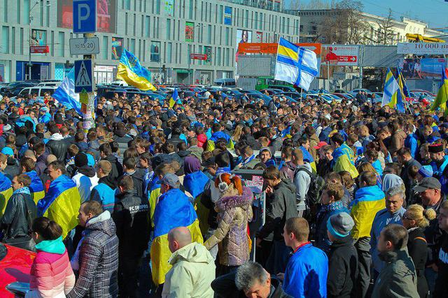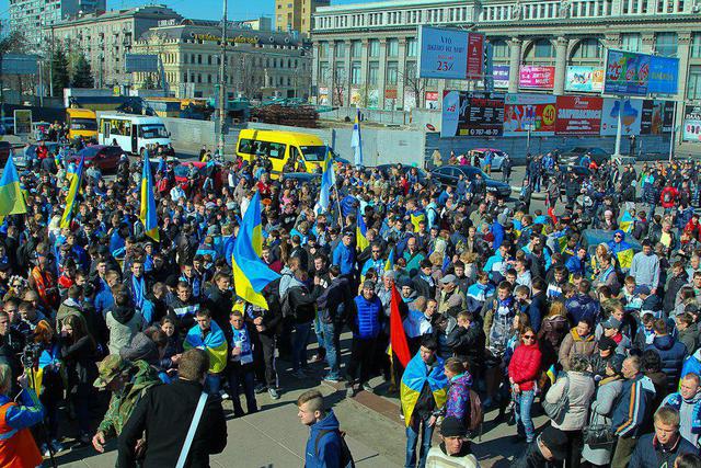 Колонна проследовала от площади Ленина до стадиона "Днепр-Арена". Основная цель митинга - показать, что Украина единая и неделимая страна.