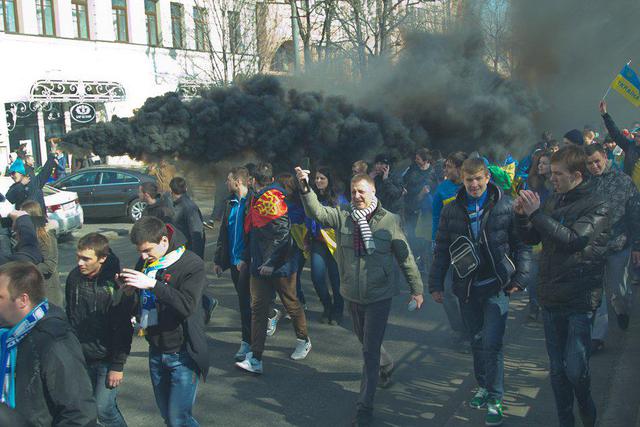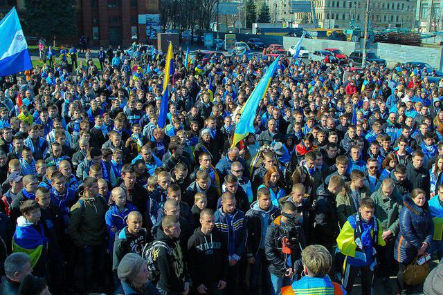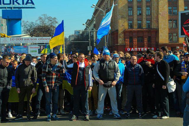 Полторы тысячи футбольных фанатов "Днепра" и киевского "Динамо" прошли маршем единства в Днепропетровске. Аналогичную акцию провели фаны "Металлиста" и "Шахтера" в Харькове.