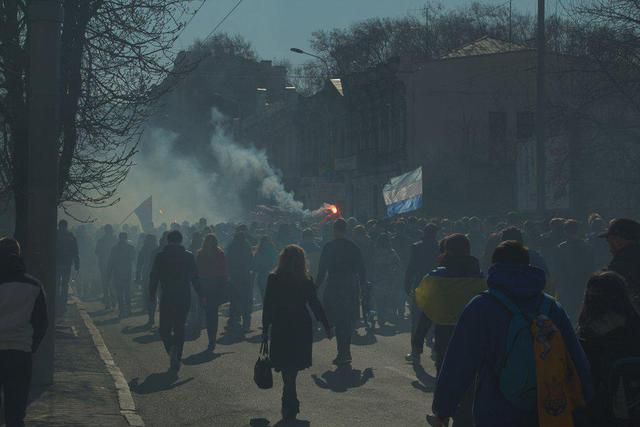 Перед матчем "Днепр" - "Динамо" футбольные фанаты обеих команд прошлись дружным маршем в поддержку единства по Днепропетровску.