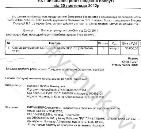 Полежай арендовала автомобиль "Мерседес" АА 0032 ВР ООО "Киевуниверсалсервис", которое обеспечивало хозяйственную деятельность резиденции "Межигорье", пишут Наши гроши.