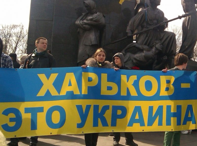 В Харькове активисты Евромайдана, "Правого сектора" и футбольные фанаты ФК "Металлист" прошлись по улицам города от памятника Тарасу Шевченко до памятника Незалежности. "Марш единства" устроили, чтобы показать единство регионов Украины.