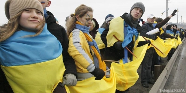 Почти 36 тысяч украинцев в различных городах во всех регионах Украины образовали живую цепь единения Украины. На улицы люди вышли ради мира в Украине. Они скандировали "Украина - едина".