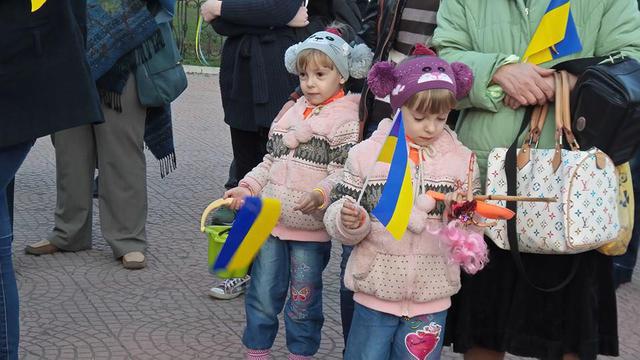 На митинг в поддержку единства Украины, который проходил возле памятника Шевченко в Луганске, пришло несколько сотен человек. Они держали национальную символику, а также плакаты с призывом сохранять единство страны.