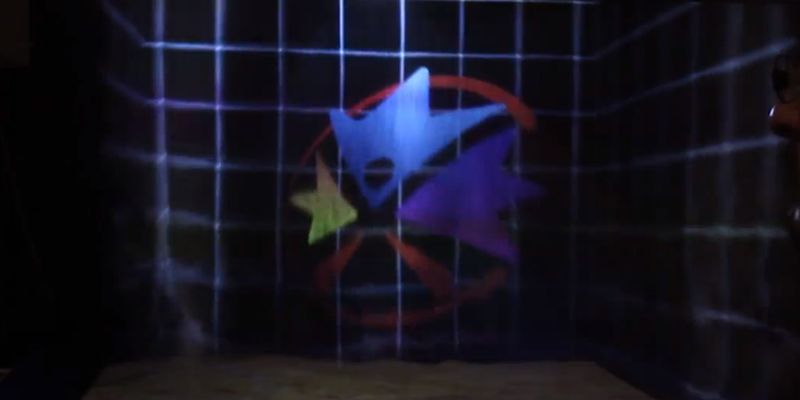 Настольный дисплей с экранами, сделанными из завесы из тумана, позволяет перемещать изображения и пересылать их через экран на дисплей.