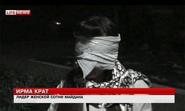 В описании к видео отмечается: "Ирма Крат, украинский активист из Киева, задержана для допроса сепаратистами на востоке Украины. По состоянию на 20 апреля находится в штаб-квартире Службы безопасности Украины в Славянске. Командир сепаратистов заявил, что она подозревается в преступлениях, в т.ч. пытках. Ее похитители не позволяли ей говорить с прессой".