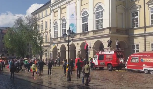 Во Львове обливаются водой в честь Поливального понедельника (ВИДЕО)
