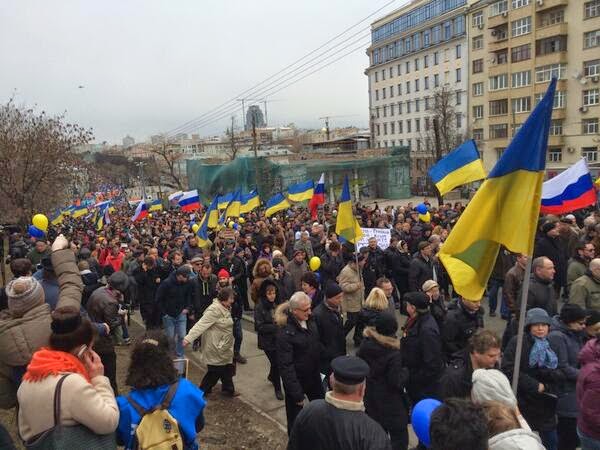 Участники шествия выкрикивали лозунги «Запорожье - это Украина» и «Восток и Запад вместе».