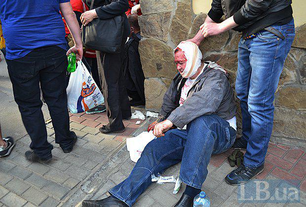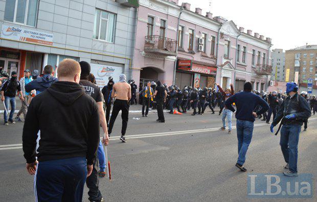 Как сообщало агентство, вечером 27 апреля в драке между ультрас "Металлиста" и пророссийскими активистами использовались биты, палки и камни. Среди пострадавших - два милиционера.