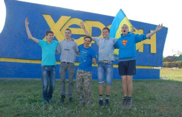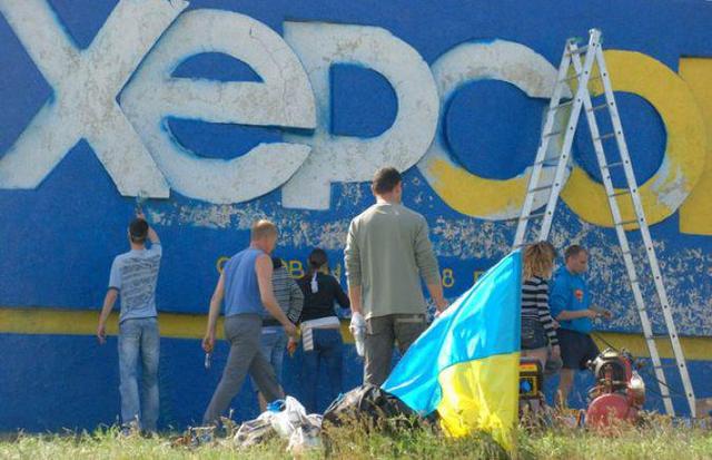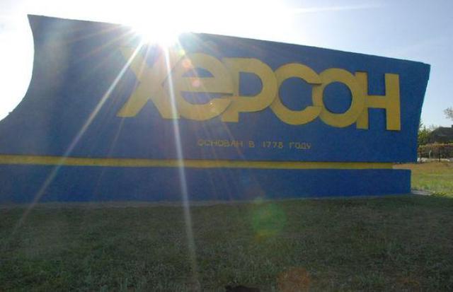 Стелу на въезде в город Херсон раскрасили в цвета национального флага Украины (ФОТО)
