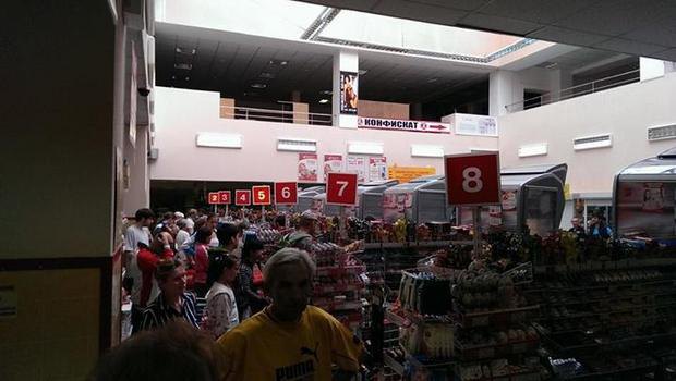 Сегодня в Крыму последний день хождения гривны, в связи с чем в магазинах возникли огромнейшие очереди из покупателей, желающих избавиться от национальной валюты.