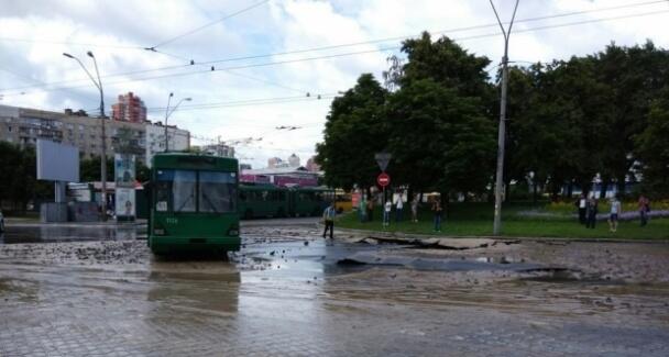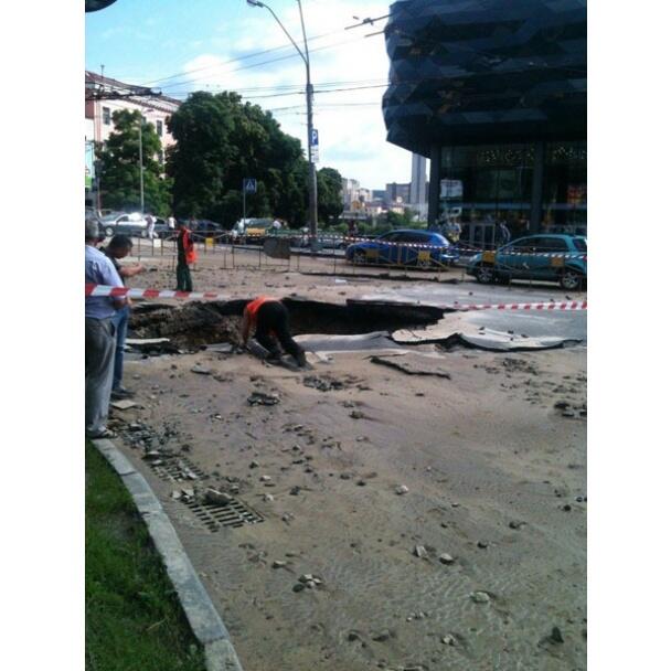 Во время обвала асфальта в Киеве никто не пострадал (ФОТО)