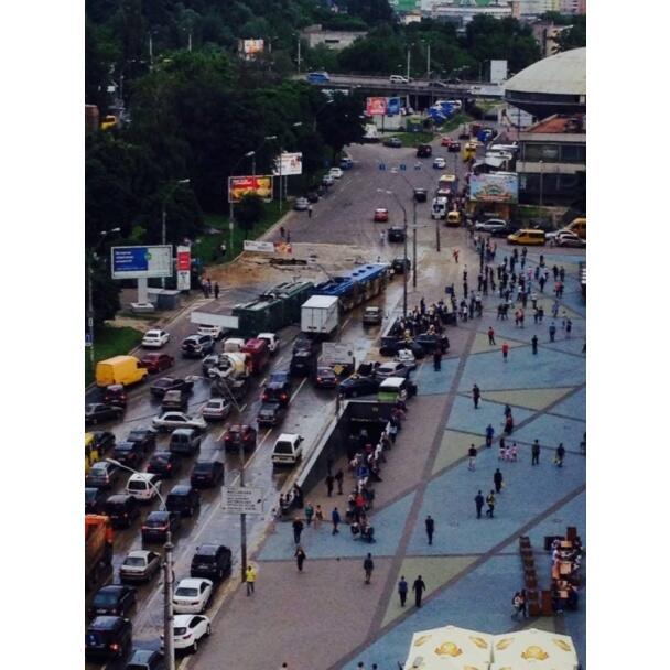 В Киеве в очередной раз провалился асфальт. ЧП произошло на Лыбедской площади напротив торгового центра "Ocean Plaza". Из-за пропасть в асфальте общественный транспорт и частные автомобили киевлян оказались в огромной пробке. Провал образовался из-за прорыва теплосети.