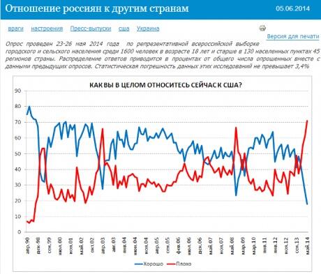 При этом в начале 90-х плохо к США относились только 7% жителей России.
