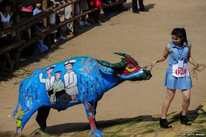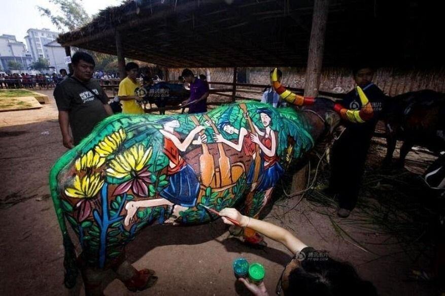 Человеческая тяга к творчеству практически не имеет границ. Человек всегда стремится создать что-то новое и в наше время у него для этого существуют огромные возможности для самовыражения. Так, 18 мая художники из восьми стран мира собрались в округе Джанг Ченг в Китае, чтобы принять участие в международном конкурсе «буйволиного бодиарта». В городе Пуэр конкурс бодиарта среди крупного рогатого скота проводится последние три года, а в этом году конкурс совпадает с 60-летием со дня основания Джанг Ченг County.