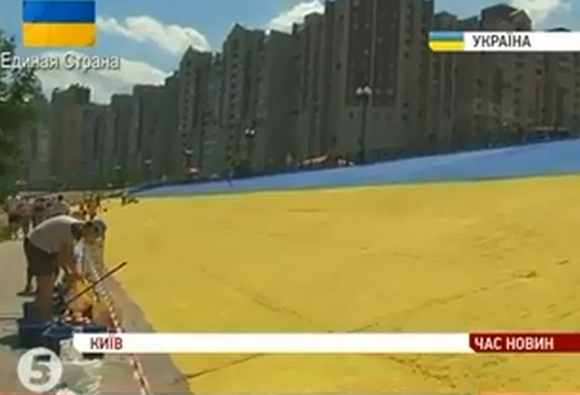 Украинцы нарисовали на столичном пляже самый большой в мире флаг Украины (ВИДЕО)