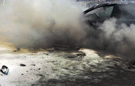 На кадрах, снятых с места событий, видно, что горит именно эта машина.