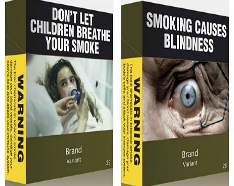 Начиная с 1 декабря, все логотипы табачных компаний на сигаретных пачках заменяются надписями темно-оливкового цвета, которые сопровождаются изображениями людей, страдающими вызванными курением заболеваниями.