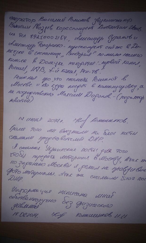 Готовые тексты им присылали из редакции в Москве. Именно эти двое распространили материал о якобы использовании фосфорных бомб под Славянском и об использовании украинской армией установок "Град" против мирного населения.