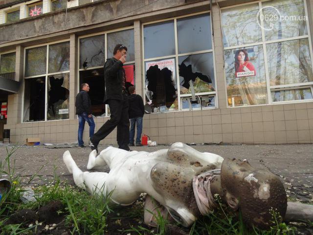 Дорогие магазины в центре столицы уже давно и наглухо заколотили свои витрины деревянными щитами – от греха подальше. Кто-то еще работает, а кто-то уже нет – двери иных бутиков неподалеку от захваченной сепаратистами Донецкой ОГА закрыты почти месяц.