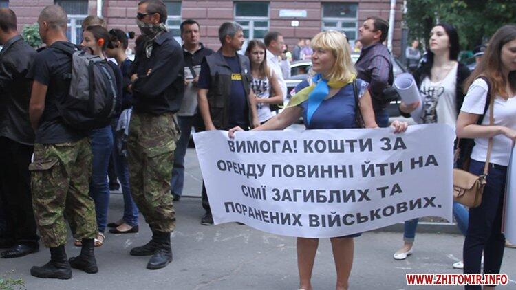 Участники акции стояли с плакатом, на котором было написано одно требование: "Средства за аренду должны идти на семьи погибших и раненых военных".