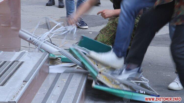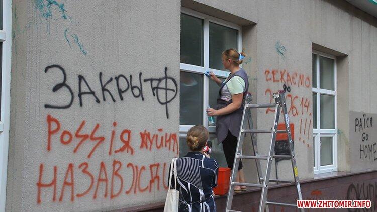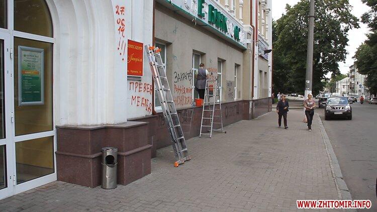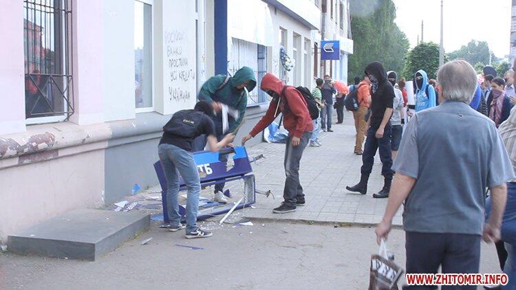 "Около 50 человек в течение четырех часов пикетировали отдельные финансовые учреждения в областном центре, выражая недовольство политикой соседнего государства в отношении Украины. Участники повредили вывески нескольких банков и разрисовали стены помещений", - пишет пресс-служба областной милиции Житомирщины.