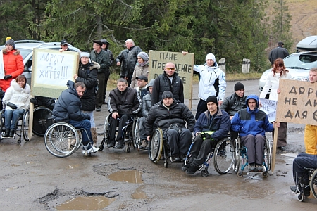 В Международный день инвалидов около 50 инвалидов в знак протеста перекрыли движение по дороге к реабилитационно-спортивному центру на Западной Украине.