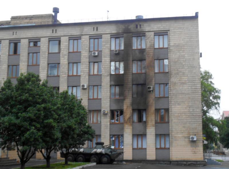 Сегодня ночь, 8 июля, в центре Артемовска раздался сильный взрыв. Как пишут местные СМИ, из гранатомета или реактивного пехотного огнемета "Шмель" было обстреляно здание горсовета.