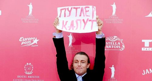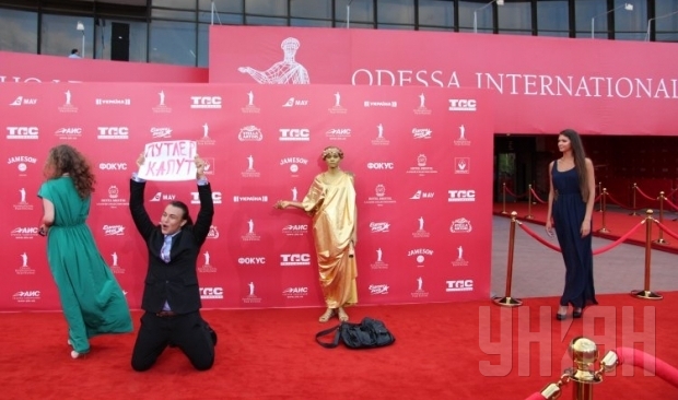 Вечером 11 июля на красной дорожке 5-го Одесского международного кинофестиваля активист организации «Креативная молодежь плюс» Евгений Довлатов устроил акцию против президента России Владимира Путина.