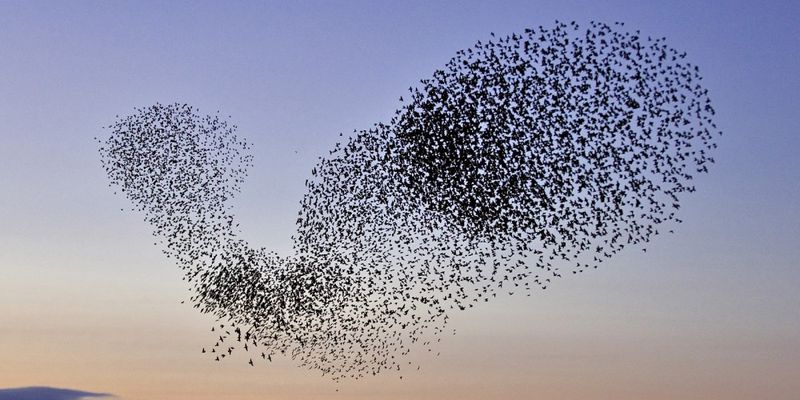 Мурмурацией называют прекрасное природное явление, когда тысячи птиц сбиваются в громадные стаи, которые динамически формируются в удивительные небесные фигуры, постоянно сжимаясь и разжимаясь. До сих пор этот феномен не удавалось объяснить даже с помощью сложных компьютерных моделей.