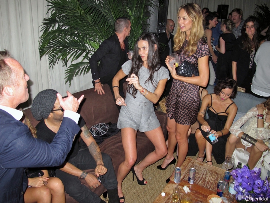 Выпив несколько бутылочек энергетического напитка, Деми начала строить рожи фотографам и навязываться другим гостям праздника. Музыкант Ленни Кравиц, который сидел с Мур за одним столом, старался сохранять невозмутимый вид. Мило улыбалась и Стейси Кейблер, возлюбленная Джорджа Клуни, с которой актриса вела себя достаточно навязчиво. Представители СМИ предположили, что за безудержным весельем Деми Мур пытается спрятать душевные проблемы.