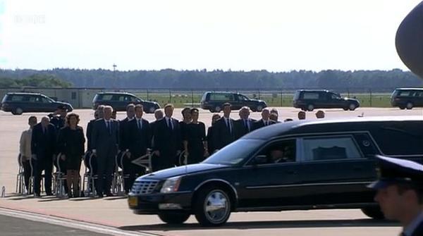 На авиабазе собралась свыше тысячи близких и родственников погибших. Прибытия самолета на базе также ожидали король Нидерландов Виллем-Александр, его жена, королева Максима, а также премьер-министр страны Марк Рютте.
