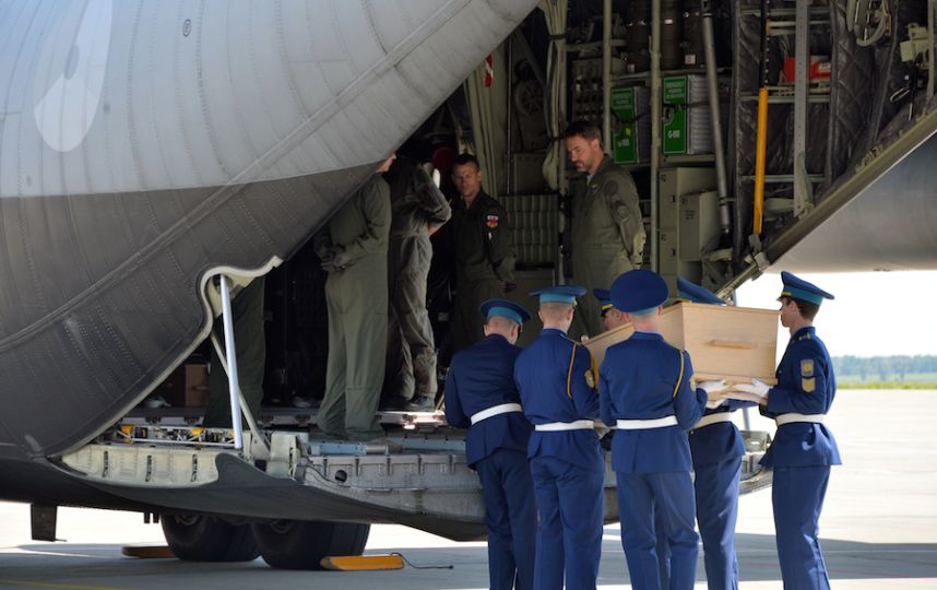 В среду, 23 июля, два военных транспортных самолета уже доставили тела 56 жертв крушения авиалайнера из Харькова в Эйндховен. Они вылетели из Харькова пополудни с интервалом примерно в час.