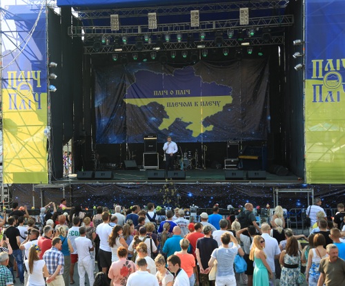 26 июля 2014 года на Майдане Независимости в Киеве прошла грандиозная и зрелищная всеукраинская акция «Плечом к Плечу». Цель мероприятия - единение всех украинцев. Поддержать жителей Восточной Украины пришли тысячи украинцев. Акция состоялась под девизом ''Мы вместе с Донбассом!'', а ее организатором выступил президент Фонда волонтеров Украины Тимофей Нагорный.