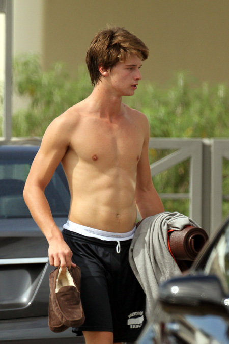 В эти выходные 17-летнего юношу сфотографировали выходящим из спортзала в Лос-Анджелесе. Во время тренировки с парня, видимо, семь потов сошло, и он выбежал на улицу прямо в спортивных шортах. Идеальная осанка, рельефные мышцы, «кубики» на животе… Да, на Патрика можно залюбоваться! Интересно, что своей фигурой он обязан вовсе не штанге или гантелям, а йоге, которой занимается уже довольно давно. Компанию сыну составила его мама Мария Шрайвер, вместе с которой паренек ходит на упражнения.