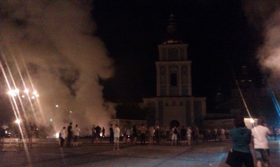 В Киеве на Михайловской площади минувшей ночью подожгли палатки, которые находились рядом с собором и в сквере. Об этом пишет в соцсети “Facebook” активистка Александра Дворецкая.