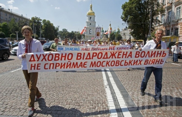 В Киеве провели шествие к 1026-й годовщине Крещения Руси. Верующие пронесли по центру столицы иконы, хоругвы и флаги Украины. В руках верующие держали плакаты с лозунгами: "Мы знаем - наш патриарх не Кирилл", "Духовно возрожденная Волынь не воспринимает московских веяний". Впервые празднование Крещения Руси состоялось без участия политиков.