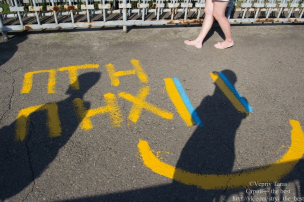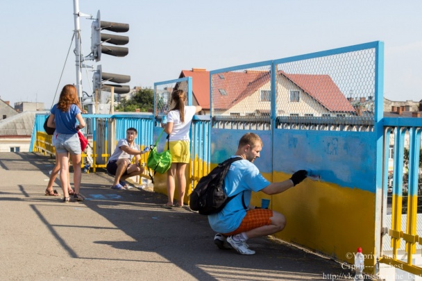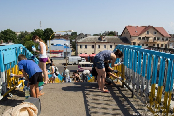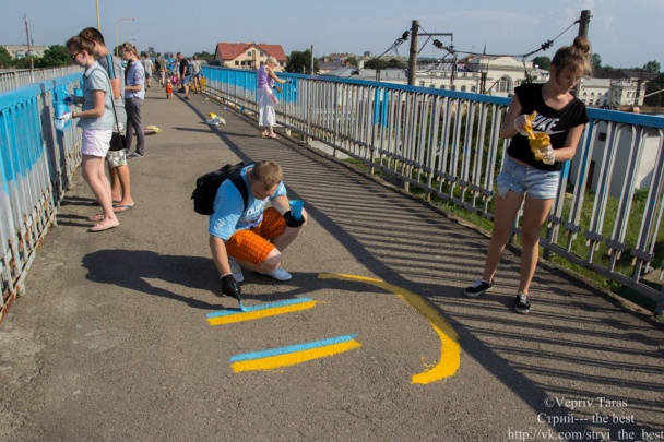 Вчера, 2 августа, стрыйские активисты, поддержав идею многих других украинских населенных пунктов, мост раскрасили в цвета национального флага.