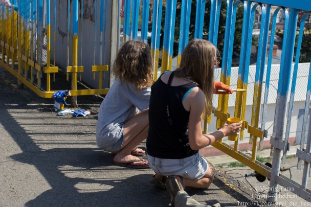 Чтобы разукрасить мост волонтеры собрались через социальные сети. Среди них были и врачи, и юристы, и журналисты. Деньгами, красками и инструментами им помогали водители, которые проезжали мимо.