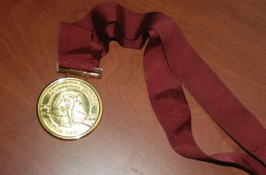 Что же касается медали, то это золотая медаль в командном зачете на Чемпионате мира по художественной гимнастике в 2001 году, который проходил в Мадриде.