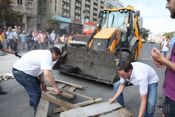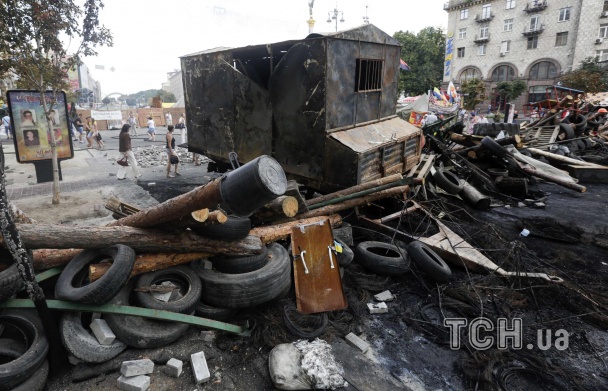 8 августа после обеда в Киеве разобрали баррикаду возле Дома профсоюзов, которая мешала движению транспорта.