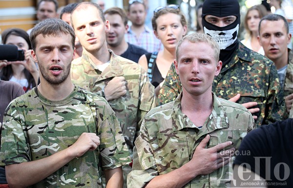 8 августа на Аскольдовой могиле вблизи захоронения Героев Крут состоялась торжественная отправка добровольцев батальона «Шахтерск» на Донбасс