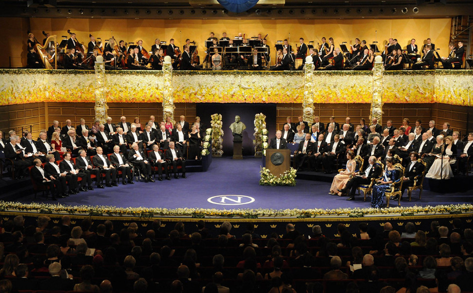 Король Швеции Карл XVI Густав в зале Стокгольмской филармонии вручил Нобелевские премии 2012 года по медицине, физике, химии, литературе и экономике. Девять лауреатов самой престижной в мире награды принимали из рук монарха диплом и золотую медаль.