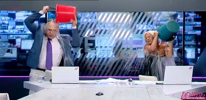 На глазах у миллионов жителей журналисты облили себя ледяной водой