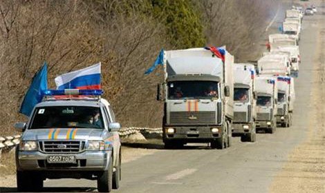 Колонна из 280 грузовиков отправилась на Украину из подмосковного Наро-Фоминска 12 августа. Они, в частности, везут продовольствие, детское питание, медикаменты, спальные мешки и электростанции различной мощности. Груз будет перемещен представителями МККК на территорию Украины через пункт пропуска «Донецк».