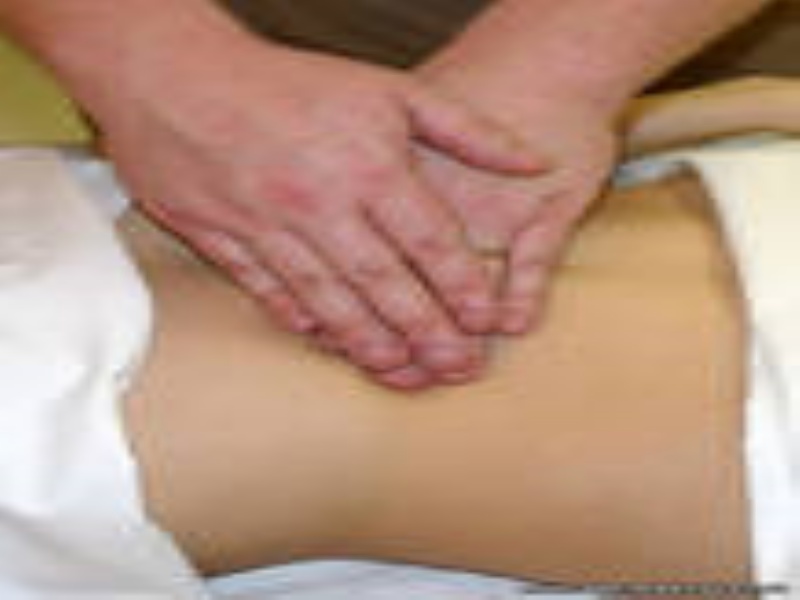 8. Завершение массаж живота - поглаживание и легкое массирование подушечками пальцев.