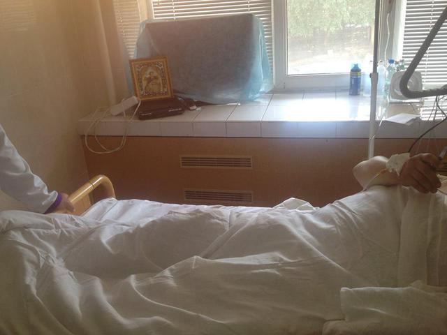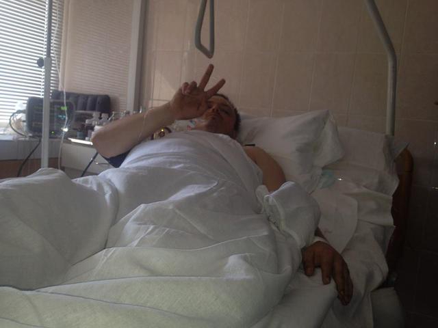 Комбат 3-го батальона Нацгвардии Семен Семенченко передает всем патриотам Украины привет из больницы, где в данное время проходит лечение после ранений, полученных в бою за Иловайск.